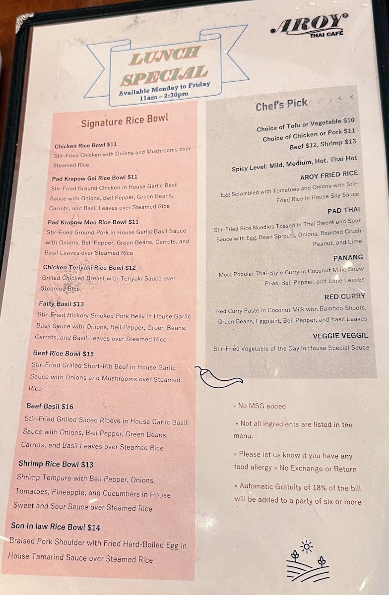 Welcome to Aroy Thai Cafe - Houston, where the vibrant flavors of Thailand come to life! Nestled at 11325 Katy Fwy, this charming eatery offers an array of delightful dishes that cater to all palates. Their lunch specials are a must-try, featuring aromatic Red Curry with coconut milk, savory Pad Thai loaded with shrimp, and a unique Son in Law Rice Bowl that will tantalize your taste buds for just $14.00.